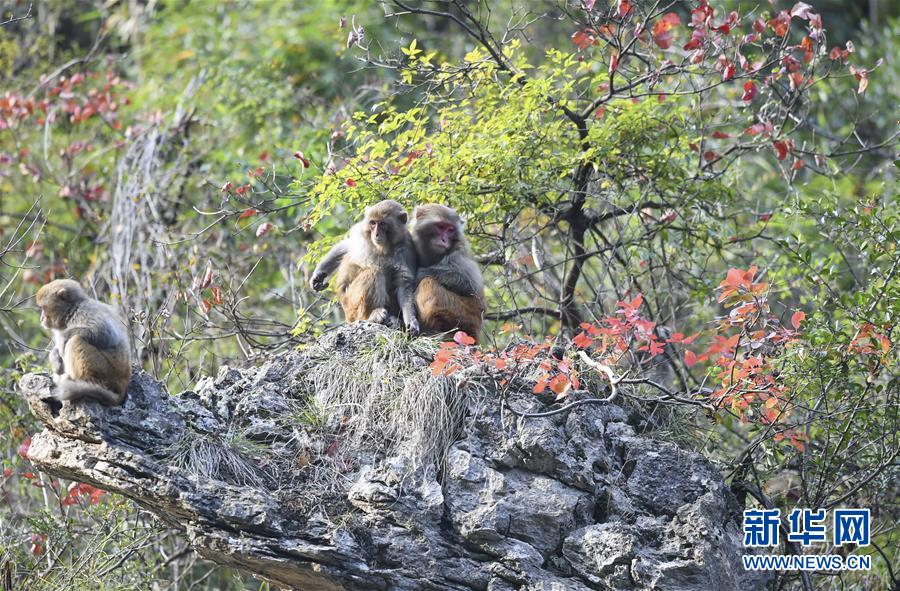 這是2019年12月27日拍攝的重慶巫山小三峽岸邊的野生獼猴。新華社記者王全超攝