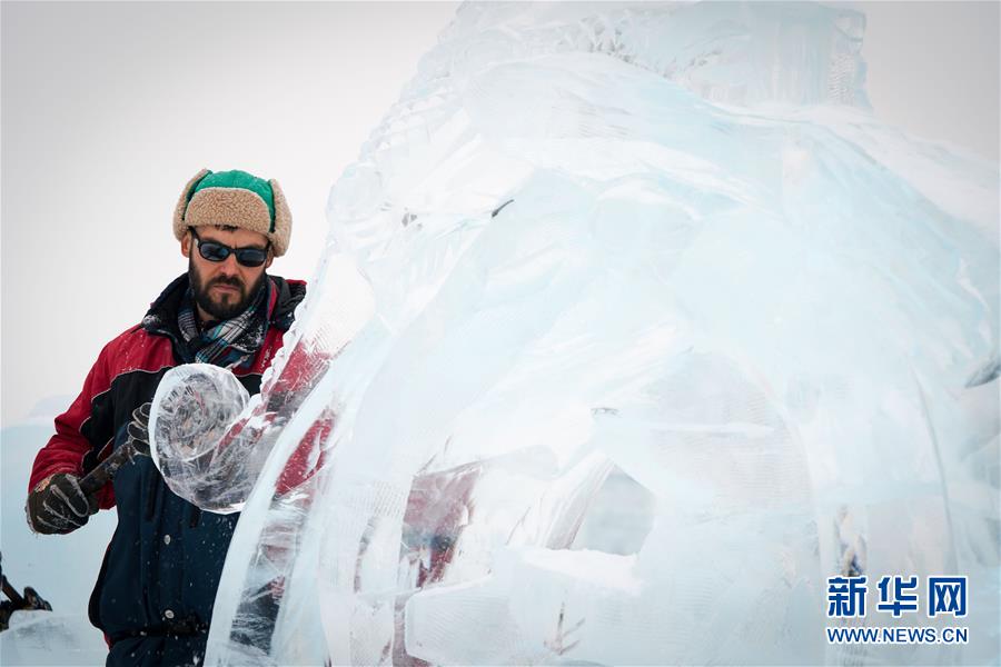 1月7日,參賽者在進行冰雕創(chuàng)作。新華社記者王松攝