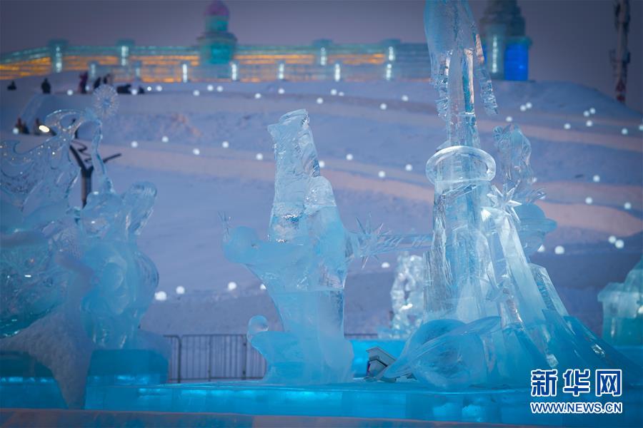 這是哈爾濱冰雪大世界園區(qū)中的景觀(guān)(1月5日攝)。新華社記者王松攝