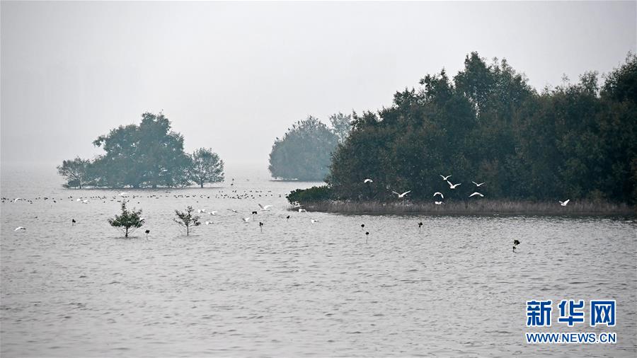 治理后的深圳河,水鳥(niǎo)成群飛過(guò)(2019年12月22日攝)。 新華社記者 梁旭 攝