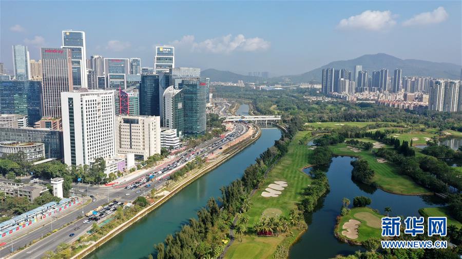這是1月7日拍攝的深圳南山區(qū)大沙河兩岸景觀(無(wú)人機(jī)照片)。 新華社記者 梁旭 攝