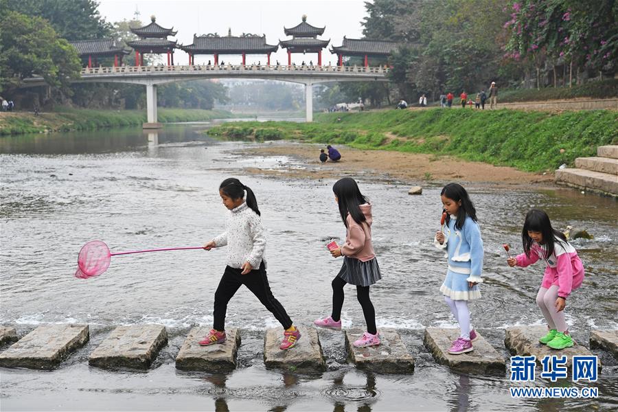 2019年12月22日,家長(zhǎng)帶著孩子在深圳龍崗河上玩耍。 新華社記者 梁旭 攝