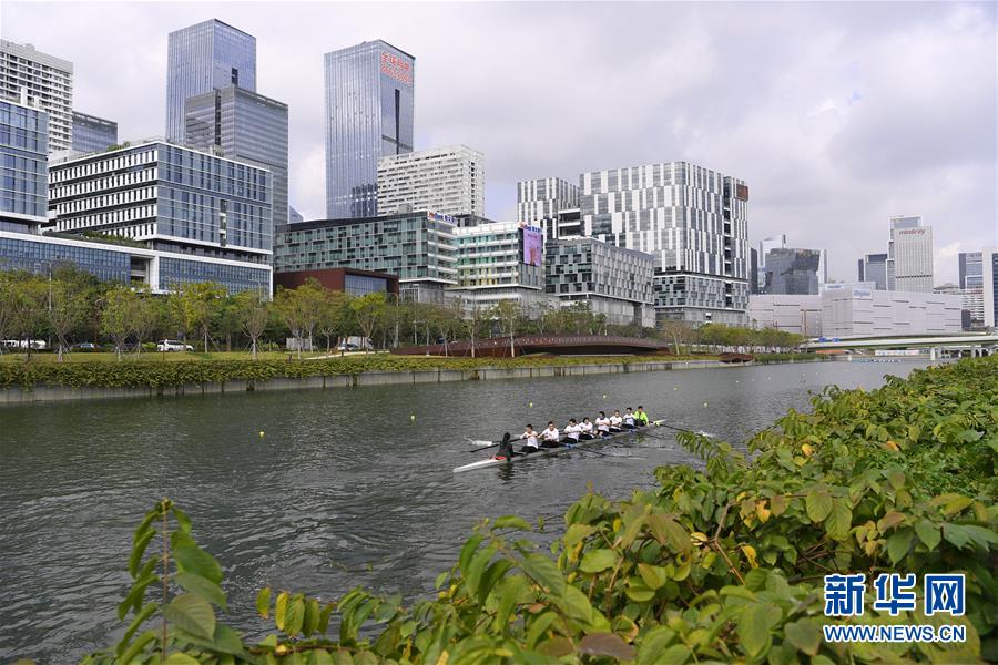 1月7日,賽艇愛(ài)好者在深圳大沙河上訓(xùn)練。 新華社記者 梁旭 攝