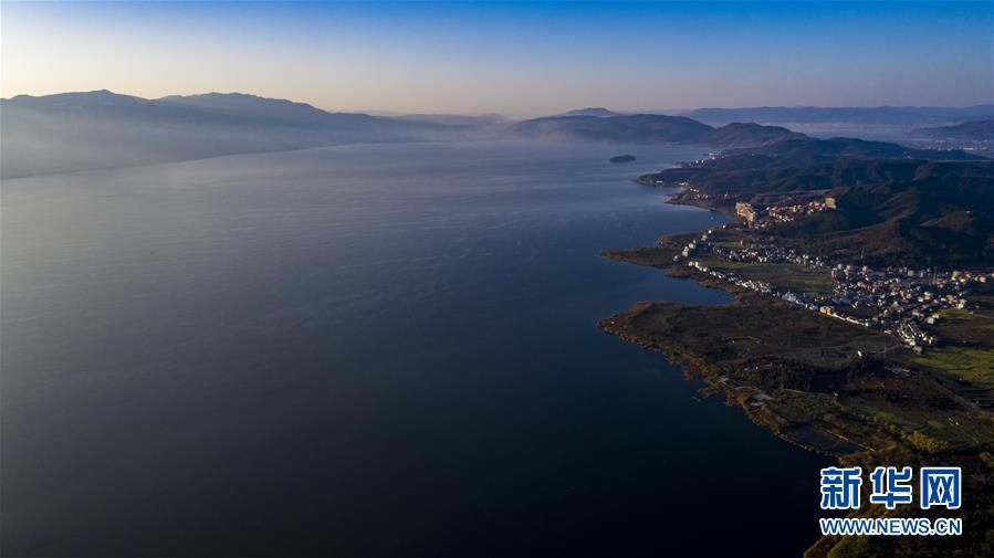 空中俯瞰撫仙湖(無人機(jī)照片,1月10日攝)。 來自云南省玉溪市撫仙湖管理局的數(shù)據(jù)顯示,撫仙湖2019年度保持一類水質(zhì),總磷、總氮等數(shù)值較2018年有所下降。 新華社記者 江文耀 攝