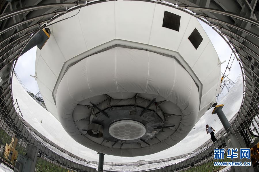 8月28日,工作人員在引導FAST饋源艙下降以進行檢修。新華社記者歐東衢攝