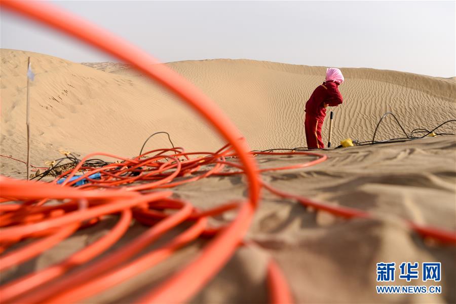 1月14日,放線工張進(jìn)秀在放完一組檢波器后直起腰休息。地球物理勘探是油氣開發(fā)的第一步,相當(dāng)于給地球做CT。物探工人按照嚴(yán)格的測線部署,在相應(yīng)位置鉆井,然后實(shí)施地震,采集地震波數(shù)據(jù)??蒲腥藛T通過數(shù)據(jù)組成的“CT片”,就能夠清晰地“看”到地下的地質(zhì)結(jié)構(gòu),判斷哪里埋藏有石油或者天然氣。2019年10月,東方地球物理勘探有限責(zé)任公司塔里木物探處2113隊(duì)進(jìn)入新疆塔克拉瑪干沙漠腹地,開始中古14-21、塔中2兩個區(qū)塊的三維地震勘探。近2000名物探工人將在1000平方公里的范圍內(nèi)一直工作到2020年4月,這也意味著他們將在塔克拉瑪干沙漠腹地連續(xù)度過第14個除夕夜。蘊(yùn)藏著豐富石油天然氣資源的新疆塔克拉瑪干沙漠有“死亡之海”之稱,氣候干燥,年降水量在50毫米以下,冬季地表最低溫度超過零下30攝氏度,是世界油氣勘探難度最大的地區(qū)之一。為避開風(fēng)季,物探工人每年9、10月份進(jìn)入沙漠,一直工作到來年4月,夜以繼日與黃沙、嚴(yán)寒為伴,用辛勤的汗水,為祖國找油找氣。新華社記者丁磊攝