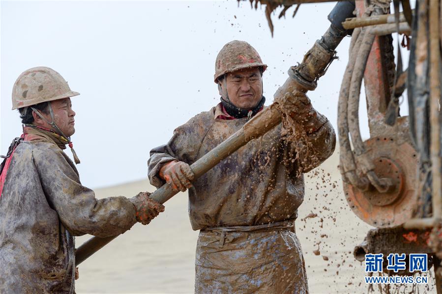 1月13日,鉆井工在連接鉆桿。地球物理勘探是油氣開發(fā)的第一步,相當(dāng)于給地球做CT。物探工人按照嚴(yán)格的測(cè)線部署,在相應(yīng)位置鉆井,然后實(shí)施地震,采集地震波數(shù)據(jù)。科研人員通過數(shù)據(jù)組成的“CT片”,就能夠清晰地“看”到地下的地質(zhì)結(jié)構(gòu),判斷哪里埋藏有石油或者天然氣。2019年10月,東方地球物理勘探有限責(zé)任公司塔里木物探處2113隊(duì)進(jìn)入新疆塔克拉瑪干沙漠腹地,開始中古14-21、塔中2兩個(gè)區(qū)塊的三維地震勘探。近2000名物探工人將在1000平方公里的范圍內(nèi)一直工作到2020年4月,這也意味著他們將在塔克拉瑪干沙漠腹地連續(xù)度過第14個(gè)除夕夜。蘊(yùn)藏著豐富石油天然氣資源的新疆塔克拉瑪干沙漠有“死亡之海”之稱,氣候干燥,年降水量在50毫米以下,冬季地表最低溫度超過零下30攝氏度,是世界油氣勘探難度最大的地區(qū)之一。為避開風(fēng)季,物探工人每年9、10月份進(jìn)入沙漠,一直工作到來年4月,夜以繼日與黃沙、嚴(yán)寒為伴,用辛勤的汗水,為祖國(guó)找油找氣。新華社記者丁磊攝
