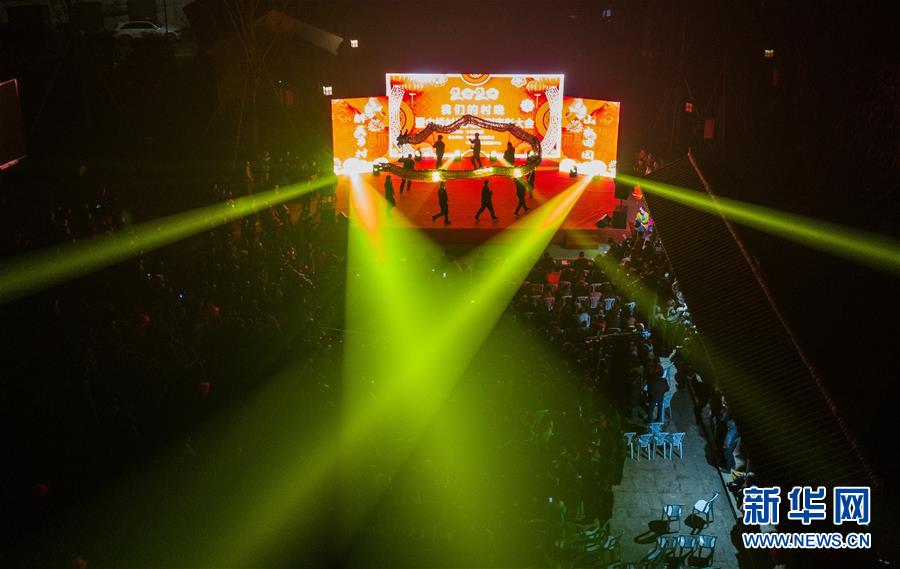 1月14日,杭州市余杭區(qū)中泰街道中橋村的文化公園內(nèi)在進行“我們的村晚”舞龍表演,吸引了大批當(dāng)?shù)匕傩沼^看(無人機照片)。臨近春節(jié),浙江省杭州市余杭區(qū)中泰街道各村社的文化禮堂紛紛上演“我們的村晚”。老百姓自編、自導(dǎo)、自演為主的“土味”聯(lián)歡會因接地氣、親情濃而深受當(dāng)?shù)匕傩盏南矏?,成為?dāng)?shù)剜l(xiāng)村百姓的新年迎春“文化大餐”。近年來,中泰街道以文化振興助推鄉(xiāng)村振興。目前,中泰街道下屬各村陸續(xù)建成文化禮堂7個、社區(qū)文化家園2個,努力培育和挖掘出一批鄉(xiāng)土文化人才及原創(chuàng)作品,2019年全年開展各類鄉(xiāng)村社區(qū)惠民文體活動累計180余場次。新華社記者徐昱攝