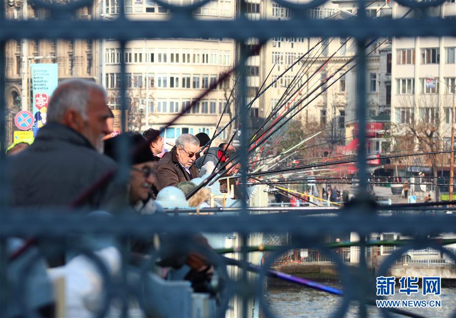 1月14日,在土耳其伊斯坦布爾,人們?cè)诤_叴贯灐?近日,土耳其最大城市伊斯坦布爾的氣溫轉(zhuǎn)暖,不少垂釣愛好者來到海邊,享受冬日的暖陽和垂釣的樂趣。 新華社記者 徐速繪 攝