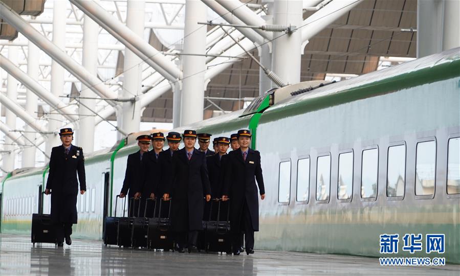 1月3日,卞菁和同事們從井岡山站出發(fā),準(zhǔn)備前往北京。新華社記者 張浩波 攝