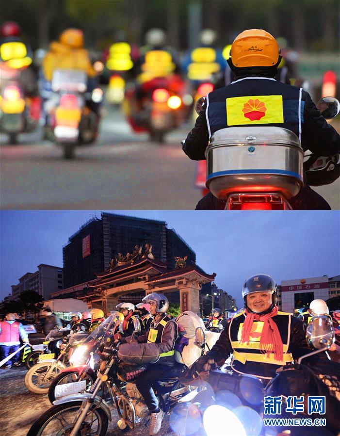 當日,首批198輛摩托車、268人從福建省泉州、廈門、漳州等地出發(fā),踏上回家之旅。為方便這支摩托大軍,從1月15日至23日,中石油啟動連續(xù)第9年的“溫暖回家路·鐵騎返鄉(xiāng)”公益行動,開放福建、江西兩地35座加油站,為返鄉(xiāng)鐵騎提供免費加油、交通反光背心、姜湯熱茶和地圖等一系列愛心幫助。