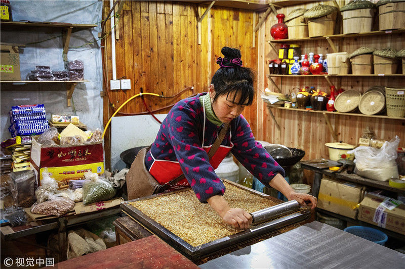 2019年1月26日,重慶中山古鎮(zhèn),880桌“千米長(zhǎng)宴”5萬(wàn)人共品年味。街坊們?cè)陬^天就開(kāi)始準(zhǔn)備各種菜肴與小吃。