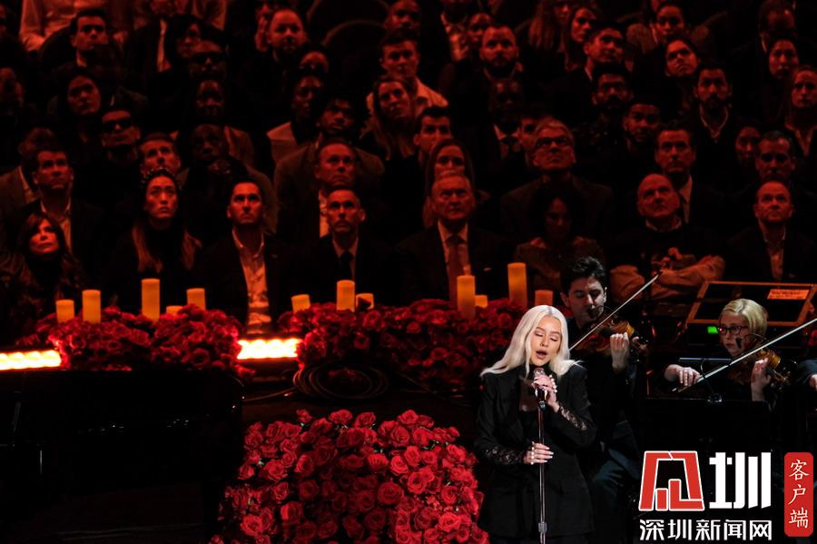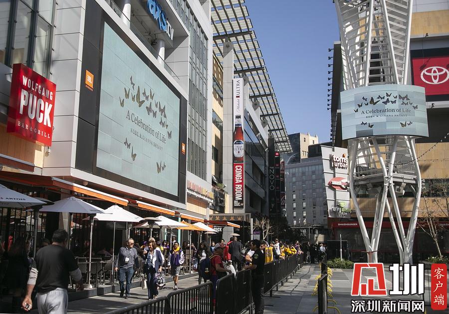 美國洛杉磯,NBA巨星科比-布萊恩特與女兒吉安娜追思會于洛杉磯湖人主場斯臺普斯中心舉行。