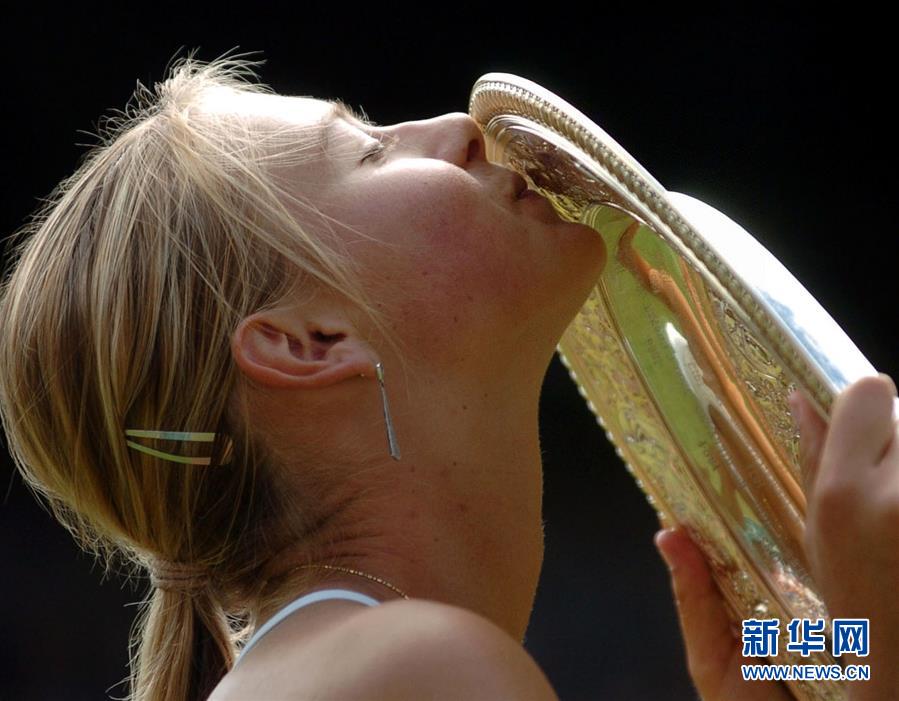 圖為2004年7月3日,莎拉波娃在溫布爾登網(wǎng)球錦標(biāo)賽女單決賽中戰(zhàn)勝美國選手小威廉姆斯,奪得冠軍。