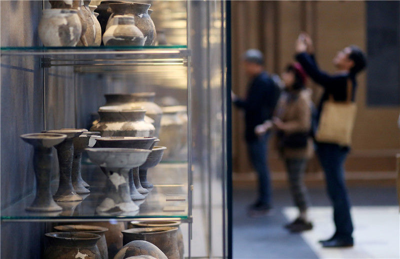 2019年10月19日,河南洛陽,二里頭夏都遺址博物館。觀眾在參觀陶器展。