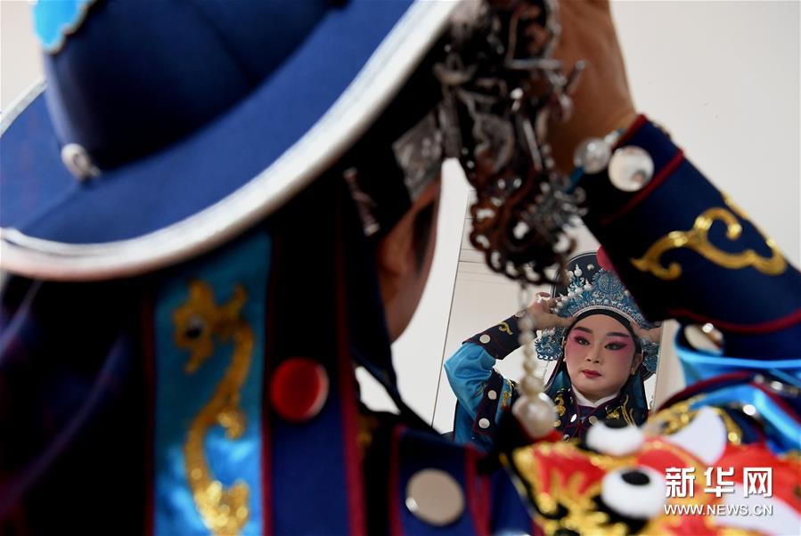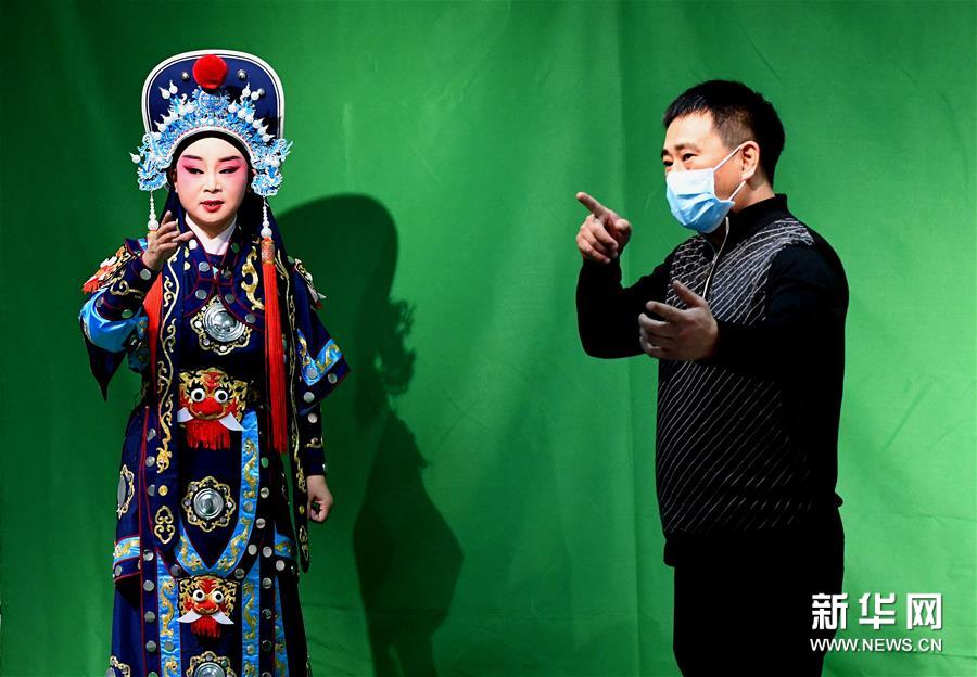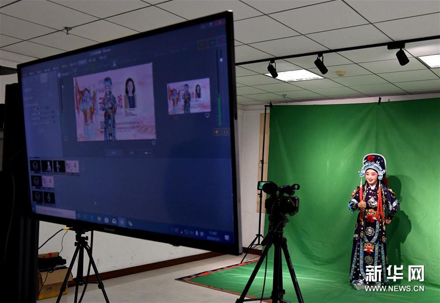 3月3日,李金玲在鄭州文化館通過直播的形式進(jìn)行帶妝表演豫劇《花木蘭》選段。李金玲是鄭州工程技術(shù)學(xué)院音樂舞蹈學(xué)院的教授,也是豫劇常派弟子。14歲開始學(xué)習(xí)豫劇的她師從豫劇大師常香玉的次女陳小香。多年來,除了本職工作教學(xué)外,她還作為文化志愿者,到各地義務(wù)表演、授課,致力于豫劇的傳承與發(fā)展。疫情防控期間,鄭州文化館展開線上文藝戰(zhàn)“疫”,開通網(wǎng)絡(luò)直播平臺,李金玲也作為志愿者走進(jìn)“直播間”,進(jìn)行帶妝表演和教學(xué),精彩的“云”上表演吸引了不少戲迷的關(guān)注。“在這個特殊時期,通過直播的形式為大家表演,希望可以讓更多的人喜歡和了解豫劇,感受它獨特的魅力?!崩罱鹆嵴f。新華社記者 李安 攝