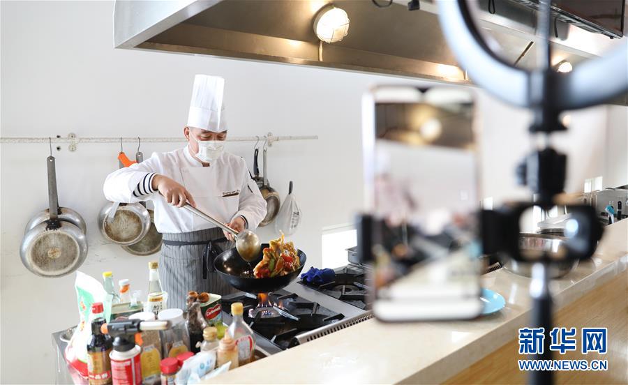 3月4日,職教城內(nèi)的鞍山市現(xiàn)代服務(wù)學(xué)校的李崇老師為學(xué)生進(jìn)行遼菜烹飪實訓(xùn)網(wǎng)絡(luò)授課。遼寧省鞍山市職教城內(nèi)的各類職業(yè)教育學(xué)校從3月2日恢復(fù)網(wǎng)絡(luò)授課以來,教師們設(shè)置了豐富多彩的課程,提高1萬余名學(xué)生線上學(xué)習(xí)的積極性。新華社記者 姚劍鋒攝