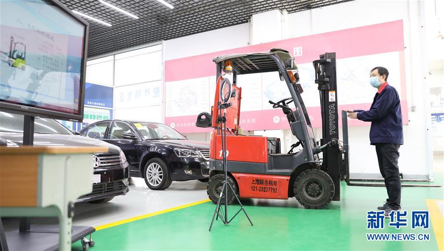 3月4日,職教城內(nèi)的鞍山市交通運(yùn)輸學(xué)校的楊永祥老師為學(xué)生進(jìn)行物流叉車實(shí)訓(xùn)網(wǎng)絡(luò)授課。遼寧省鞍山市職教城內(nèi)的各類職業(yè)教育學(xué)校從3月2日恢復(fù)網(wǎng)絡(luò)授課以來(lái),教師們?cè)O(shè)置了豐富多彩的課程,提高1萬(wàn)余名學(xué)生線上學(xué)習(xí)的積極性。新華社記者 姚劍鋒 攝
