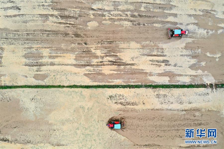 江西省南昌市南昌縣蔣巷鎮(zhèn)農(nóng)民駕駛拖拉機進行春耕翻地作業(yè)(無人機照片,2月28日攝)。新華社記者 彭昭之 攝