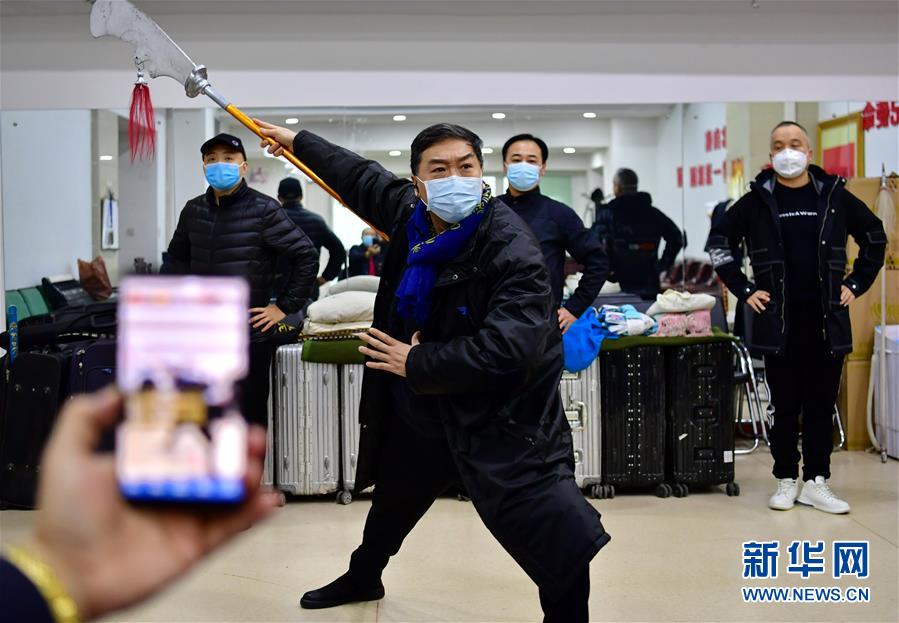 太原市晉劇藝術(shù)研究院的工作人員在為戲迷直播武凌云(左二)排練晉?。?月9日攝)。 新華社記者 曹陽(yáng) 攝