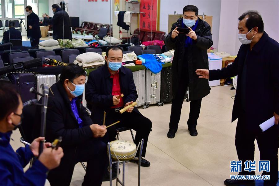 武凌云(右二)在太原市晉劇藝術(shù)研究院為戲迷直播晉劇排練(3月9日攝)。 新華社記者 曹陽 攝