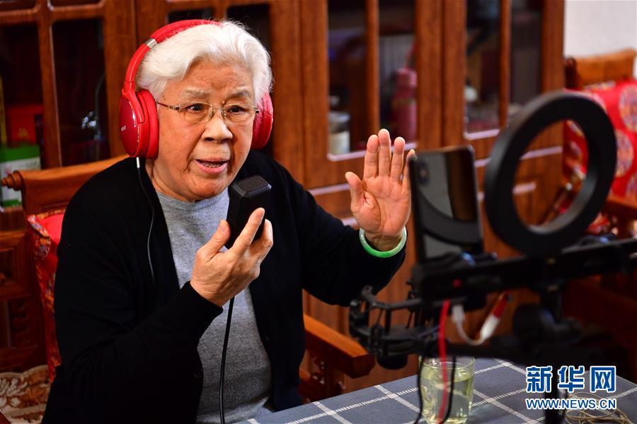 閻惠貞在直播中演唱晉劇片段(3月6日攝)。 新華社記者 曹陽 攝