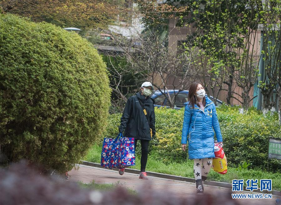 3月12日,小區(qū)樹(shù)葉綠了,黎婧(右)與網(wǎng)格員走在回家路上。 3月12日,插畫(huà)師黎婧和84位病友離開(kāi)自己居住的武漢軟件工程職業(yè)學(xué)院康復(fù)驛站,回到自己家中。他們都是治愈出院的新冠病毒肺炎患者,已經(jīng)在武漢軟件工程職業(yè)學(xué)院康復(fù)驛站進(jìn)行了14天醫(yī)學(xué)觀(guān)察,達(dá)到醫(yī)學(xué)標(biāo)準(zhǔn),成功解除隔離。他們由專(zhuān)車(chē)運(yùn)送至所屬社區(qū)附近的集散點(diǎn)后,在社區(qū)工作人員的陪同下回家。 新華社記者 肖藝九 攝