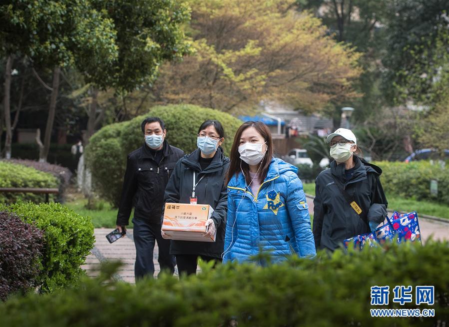 3月12日,小區(qū)樹(shù)葉綠了,黎婧(右二)與網(wǎng)格員走在回家路上。 3月12日,插畫(huà)師黎婧和84位病友離開(kāi)自己居住的武漢軟件工程職業(yè)學(xué)院康復(fù)驛站,回到自己家中。他們都是治愈出院的新冠病毒肺炎患者,已經(jīng)在武漢軟件工程職業(yè)學(xué)院康復(fù)驛站進(jìn)行了14天醫(yī)學(xué)觀(guān)察,達(dá)到醫(yī)學(xué)標(biāo)準(zhǔn),成功解除隔離。他們由專(zhuān)車(chē)運(yùn)送至所屬社區(qū)附近的集散點(diǎn)后,在社區(qū)工作人員的陪同下回家。 新華社記者 肖藝九 攝