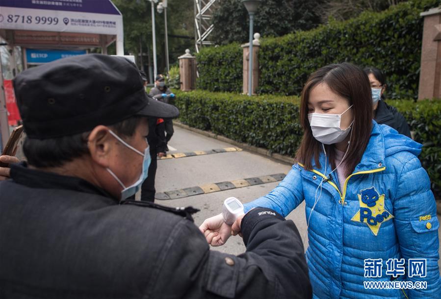 3月12日,小區(qū)安保人員對(duì)黎婧進(jìn)行體溫檢測(cè)。 3月12日,插畫師黎婧和84位病友離開自己居住的武漢軟件工程職業(yè)學(xué)院康復(fù)驛站,回到自己家中。他們都是治愈出院的新冠病毒肺炎患者,已經(jīng)在武漢軟件工程職業(yè)學(xué)院康復(fù)驛站進(jìn)行了14天醫(yī)學(xué)觀察,達(dá)到醫(yī)學(xué)標(biāo)準(zhǔn),成功解除隔離。他們由專車運(yùn)送至所屬社區(qū)附近的集散點(diǎn)后,在社區(qū)工作人員的陪同下回家。 新華社記者 肖藝九 攝