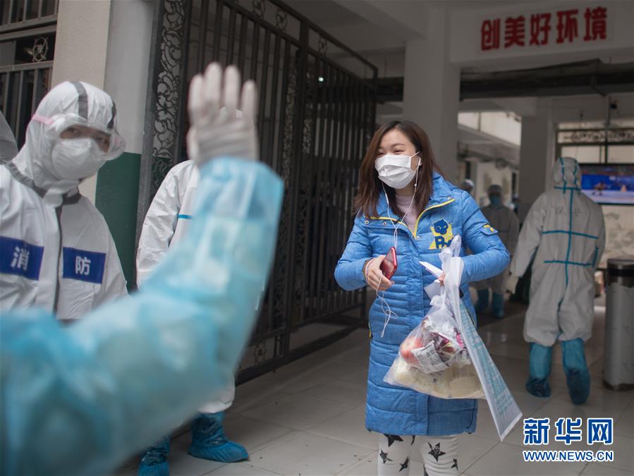 3月12日,現(xiàn)場(chǎng)的工作人員與黎婧揮手告別。 3月12日,插畫(huà)師黎婧和84位病友離開(kāi)自己居住的武漢軟件工程職業(yè)學(xué)院康復(fù)驛站,回到自己家中。他們都是治愈出院的新冠病毒肺炎患者,已經(jīng)在武漢軟件工程職業(yè)學(xué)院康復(fù)驛站進(jìn)行了14天醫(yī)學(xué)觀察,達(dá)到醫(yī)學(xué)標(biāo)準(zhǔn),成功解除隔離。他們由專(zhuān)車(chē)運(yùn)送至所屬社區(qū)附近的集散點(diǎn)后,在社區(qū)工作人員的陪同下回家。 新華社記者 肖藝九 攝
