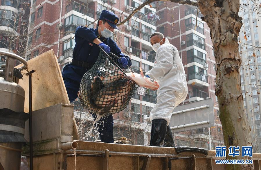 3月13日,一批運(yùn)到武漢市硚口區(qū)華生漢口城市廣場(chǎng)社區(qū)的活魚正在卸貨。當(dāng)日,首批100噸調(diào)配自湖北省咸寧市的活魚運(yùn)抵武漢市硚口區(qū)11個(gè)街道下轄社區(qū)。咸寧是魚米之鄉(xiāng),水產(chǎn)資源豐富。此次戰(zhàn)疫咸寧得到了全國(guó)人民的支持,疫情得到良好控制。咸寧送魚,希望傳遞愛心,支持武漢早日戰(zhàn)勝疫情。新華社記者程敏攝