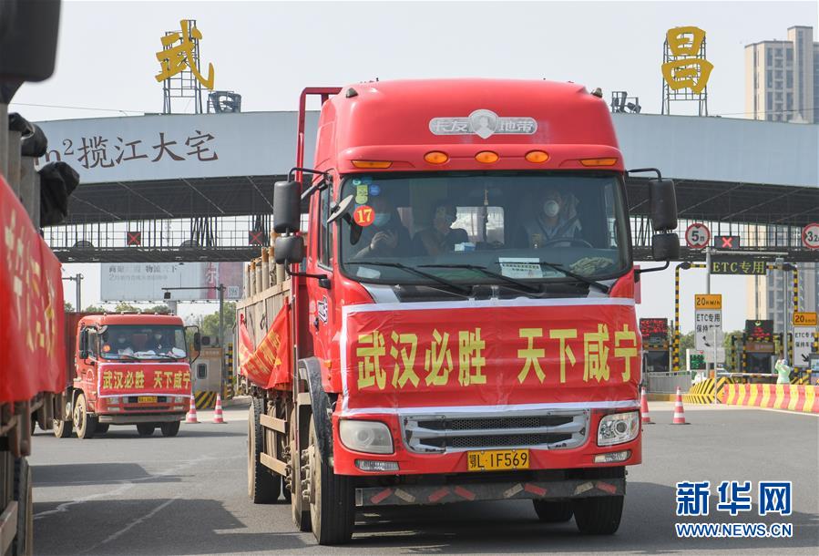 3月13日,滿載活魚的水產(chǎn)運(yùn)輸車進(jìn)入武漢。當(dāng)日,首批100噸調(diào)配自湖北省咸寧市的活魚運(yùn)抵武漢市硚口區(qū)11個(gè)街道下轄社區(qū)。咸寧是魚米之鄉(xiāng),水產(chǎn)資源豐富。此次戰(zhàn)疫咸寧得到了全國(guó)人民的支持,疫情得到良好控制。咸寧送魚,希望傳遞愛心,支持武漢早日戰(zhàn)勝疫情。新華社記者程敏攝