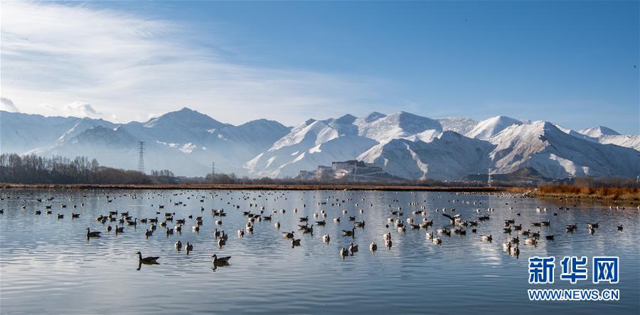拉薩河中休憩的水鳥(3月14日攝)。新華社記者孫非攝