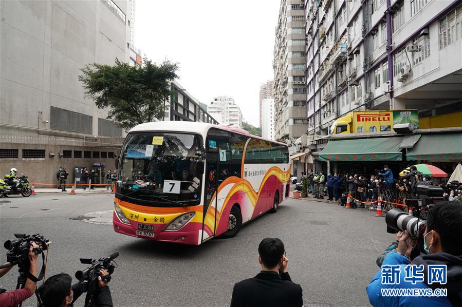 2月20日,首批被接回的香港居民乘坐專車,前往特區(qū)政府設(shè)立在新界的火炭駿洋邨檢疫營。新華社記者呂小煒攝