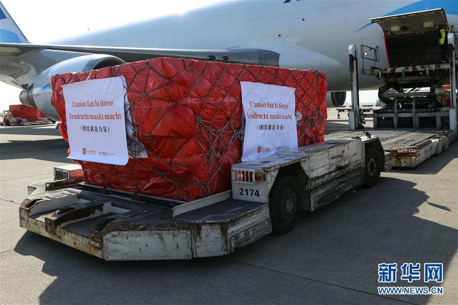 來自中國的30萬只口罩當(dāng)?shù)貢r(shí)間16日中午運(yùn)抵比利時(shí)列日機(jī)場。這是歐洲新冠肺炎疫情暴發(fā)以來,比利時(shí)首次得到大規(guī)模外來援助。這批物資由阿里巴巴公益基金會(huì)和馬云公益基金會(huì)提供。 新華社記者 張鋮 攝