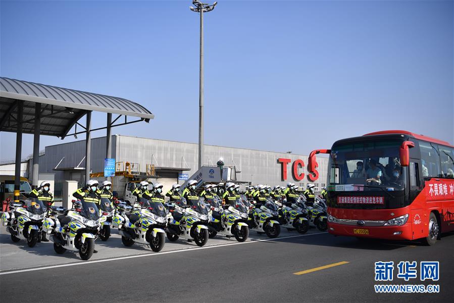 3月17日,醫(yī)療隊(duì)隊(duì)員乘坐大巴車離開天津?yàn)I海國(guó)際機(jī)場(chǎng)。新華社記者李然攝