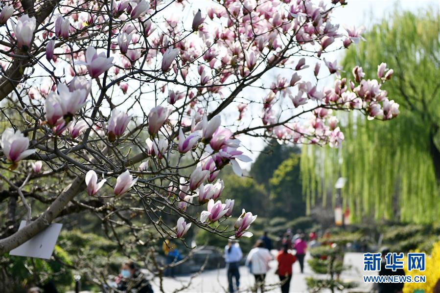 3月18日,游人在濟(jì)南百花公園游玩。新華社記者 朱崢 攝