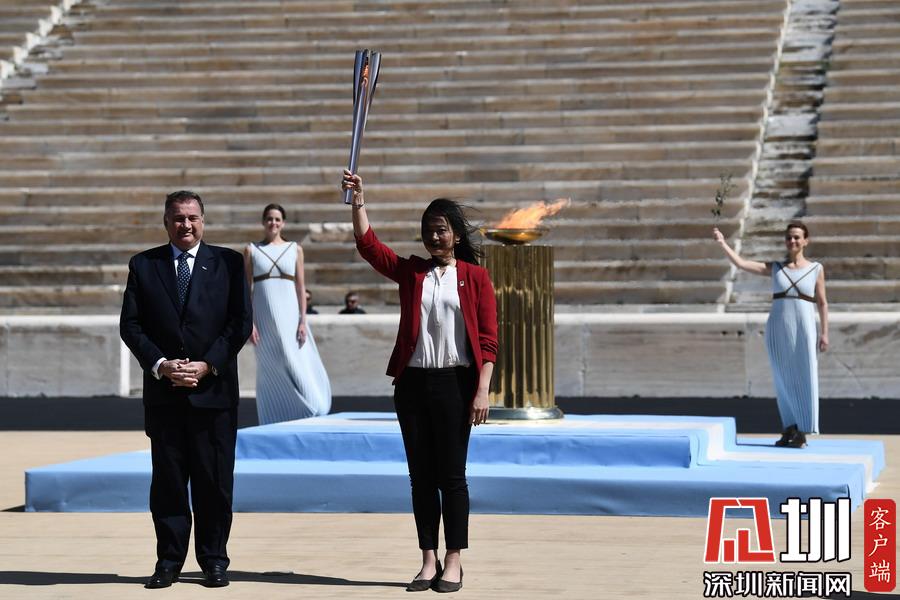 2020年3月18日,2020年東京奧運(yùn)會(huì)火炬交接儀式在希臘雅典帕納辛奈科體育場舉行。