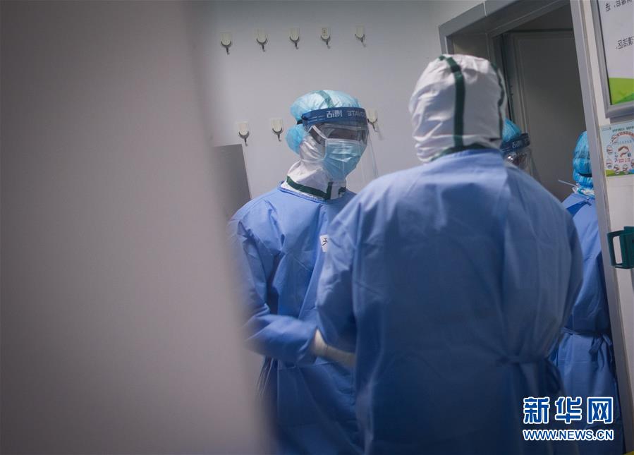 3月19日,在武漢市肺科醫(yī)院清潔區(qū),浙江醫(yī)療隊(duì)隊(duì)員在穿戴防護(hù)服。 新華社記者 肖藝九 攝