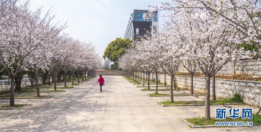 3月19日,在武漢市武昌區(qū)被網(wǎng)友稱為“武漢最美停車場”的湖北日報(bào)停車場,一名工作人員從櫻花樹邊經(jīng)過。 新華社記者 才揚(yáng) 攝