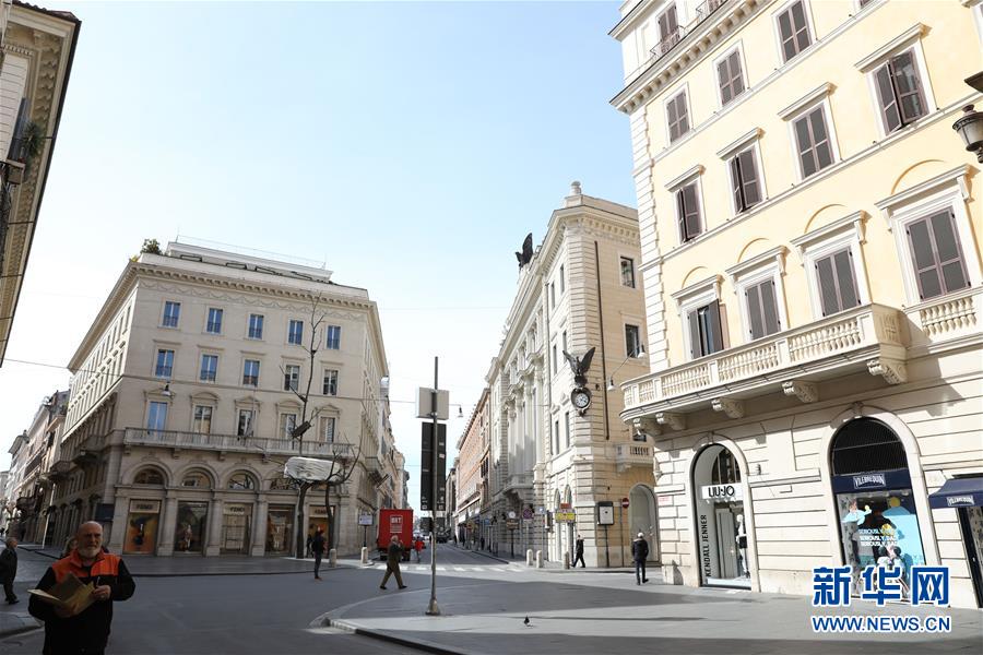 3月10日,在意大利首都羅馬,孔多蒂街上人流量明顯減少。新華社記者程婷婷攝