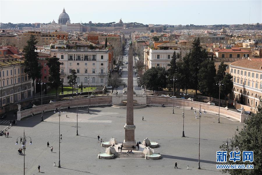 3月10日,在意大利首都羅馬,人民廣場上游人稀少。新華社記者程婷婷攝