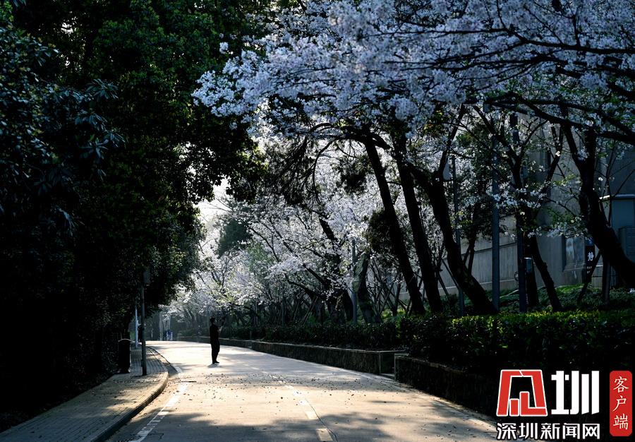 往年的這個(gè)時(shí)候,武漢大學(xué)櫻花大道早已人頭攢動(dòng),游客摩肩接踵。但是今年除了幾家正在拍攝的媒體,很少有人前來賞花。