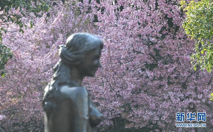 3月14日,游客在武漢東湖磨山櫻園游玩。近日氣溫漸升,武漢東湖磨山櫻園里的櫻花漸次盛開,帶來春天的氣息。新華社記者熊琦攝