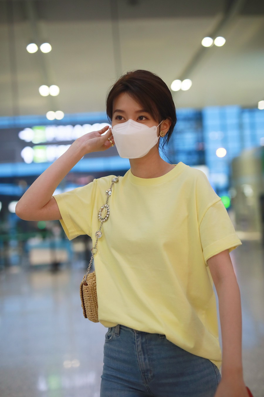 一秒入夏?喬欣私服穿搭堪稱“少女模板“ 黃色短T簡約清新顯元氣活力
