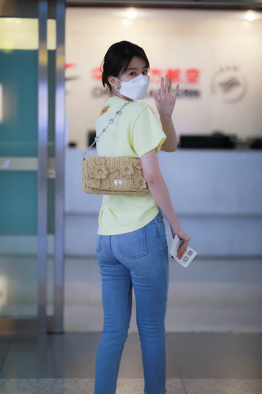 一秒入夏?喬欣私服穿搭堪稱“少女模板“ 黃色短T簡約清新顯元?dú)饣盍?/h1>