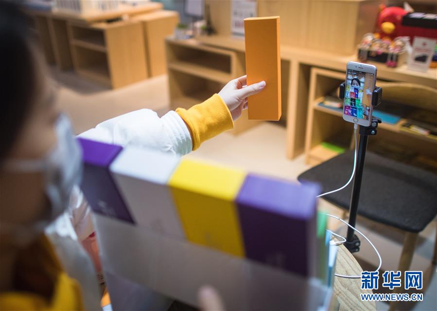 3月29日,在漢口北市場,一名主播在直播平臺直播銷售一款鋼筆。新華社記者肖藝九攝