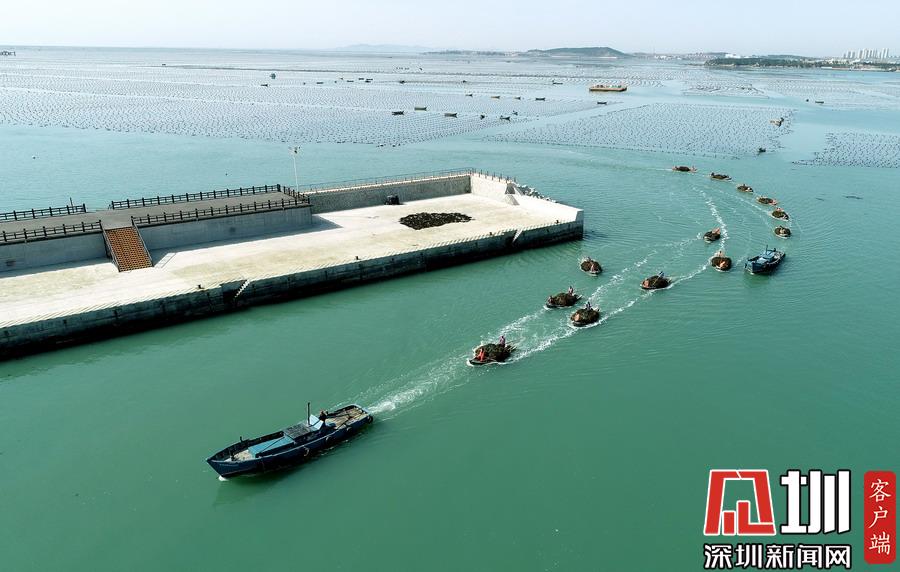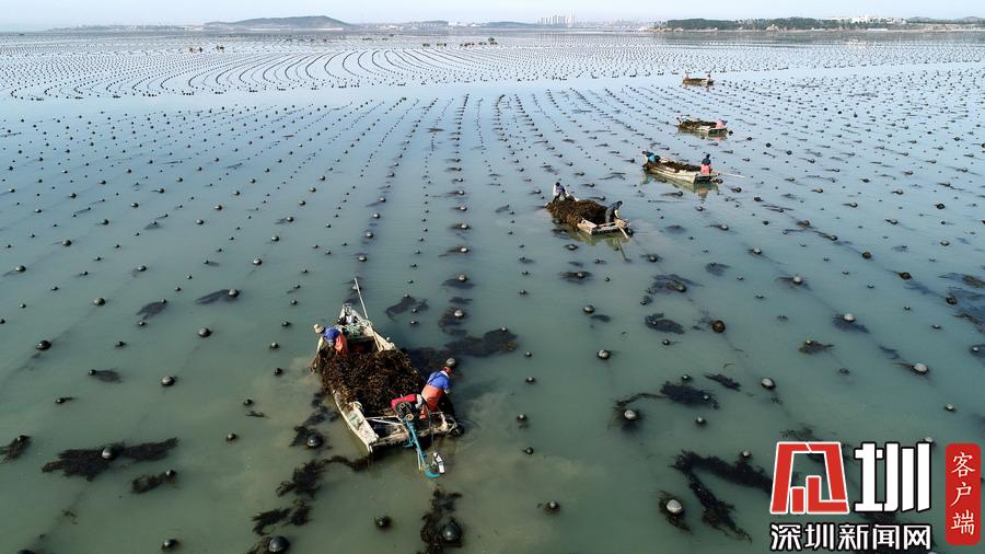 目前正是遼寧省大連市長??h扇貝和魚類收獲的季節(jié),長海縣小長山島海域經(jīng)典國家級(jí)海洋牧場呈現(xiàn)出一片繁忙的豐收景象。