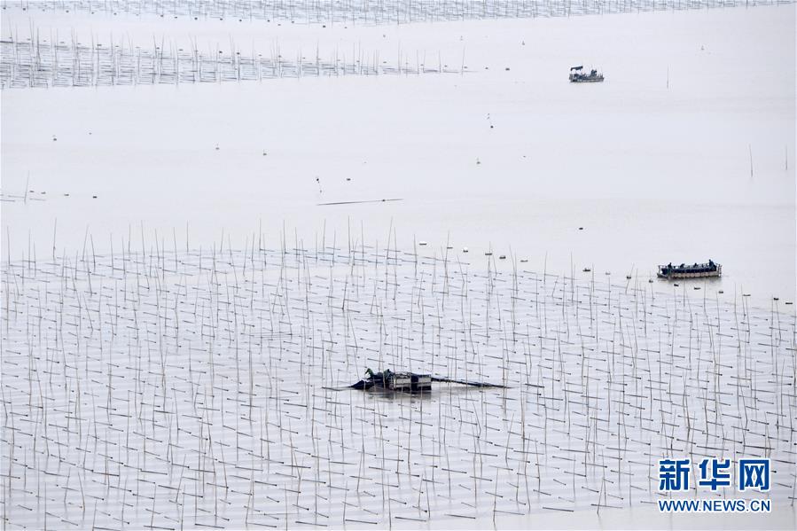 11月4日,漁民在霞浦縣三沙鎮(zhèn)的紫菜種植區(qū)收獲紫菜。近日,福建省霞浦縣沿海6萬畝紫菜迎來收獲季節(jié),漁民們出海收獲紫菜,海上田園一派繁忙豐收景象。新華社記者姜克紅攝