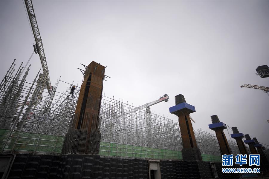 京雄城際鐵路雄安站總建筑面積47萬平方米,地上3層,地下2層,其中地下主體結(jié)構(gòu)將于近期完成,即將轉(zhuǎn)入地上主體結(jié)構(gòu)施工。新華社記者邢廣利攝